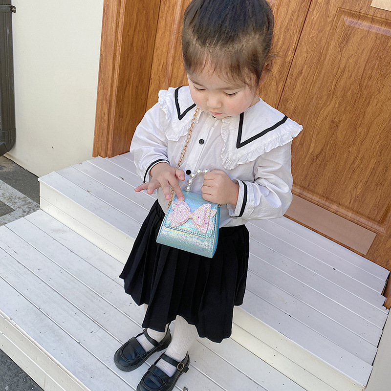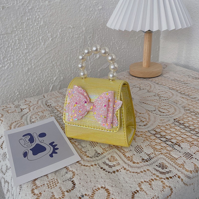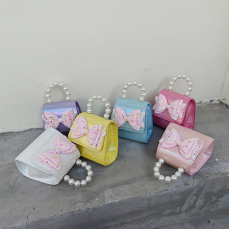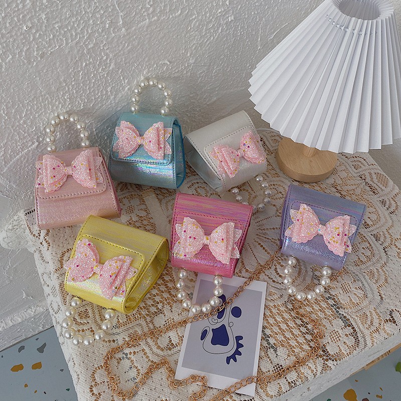 Girl Pearl carrying bag cute foreign style bow Single Shoulder Messenger Bag Girl chain accessory bag