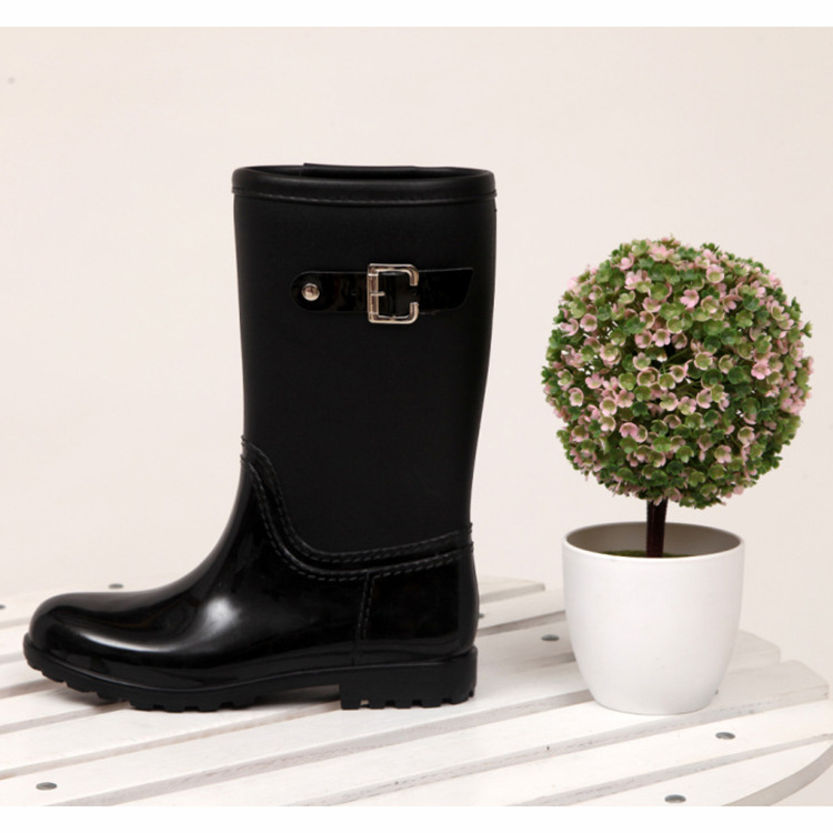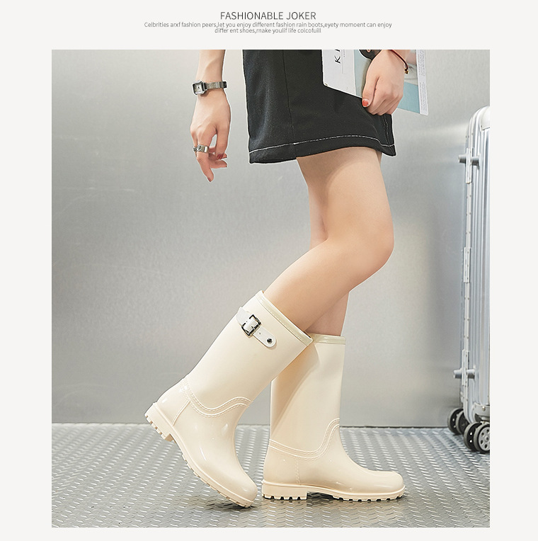 ew solid color one-piece water shoes, middle tube, fashionable women's buckle rain shoes, Pu bound rain shoes, adult rain shoes