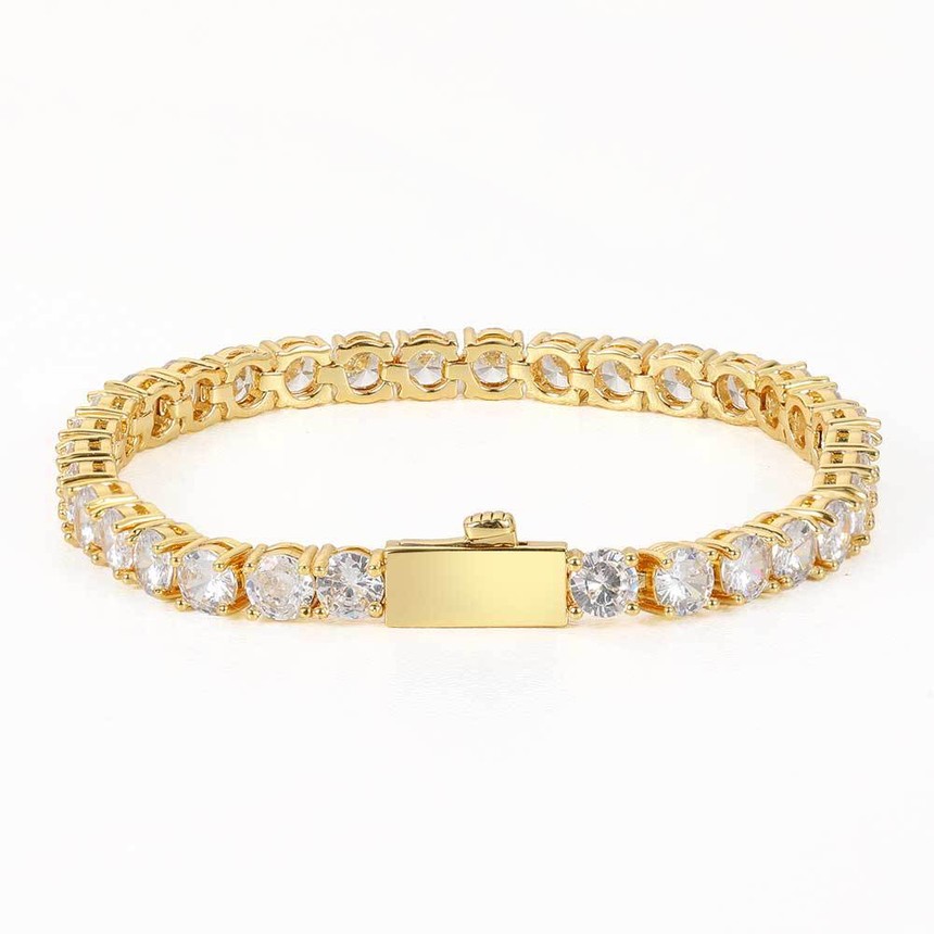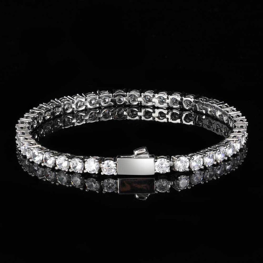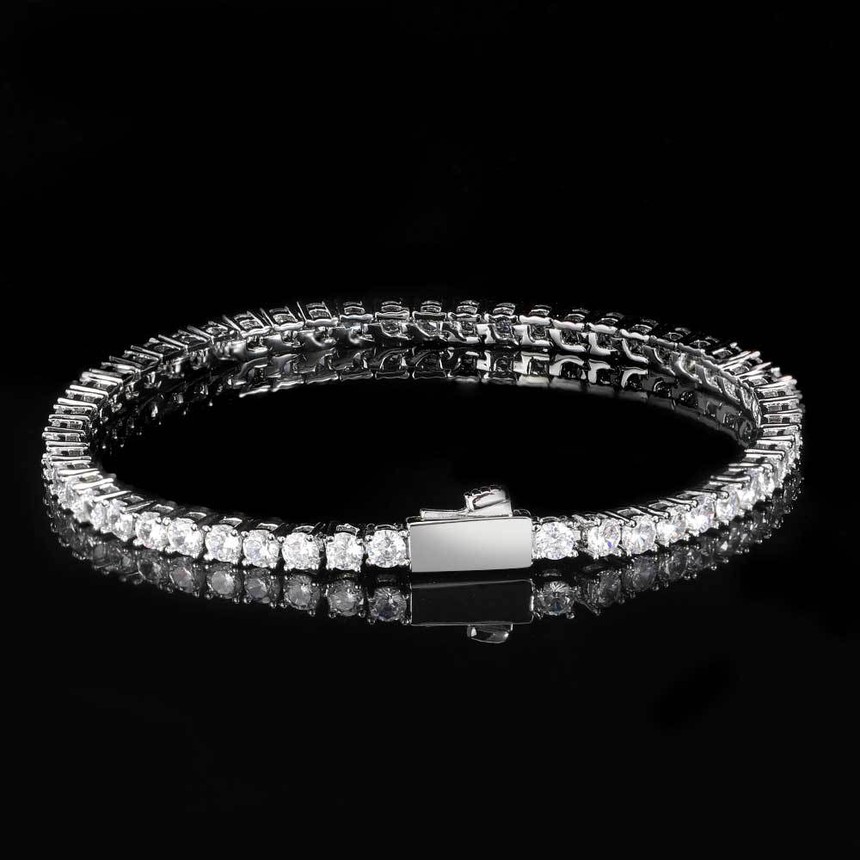 European and American Jewelry spring buckle single row Diamond Tennis chain Zircon Bracelet Fashion Brand hip hop men's bracelet accessories wholesale