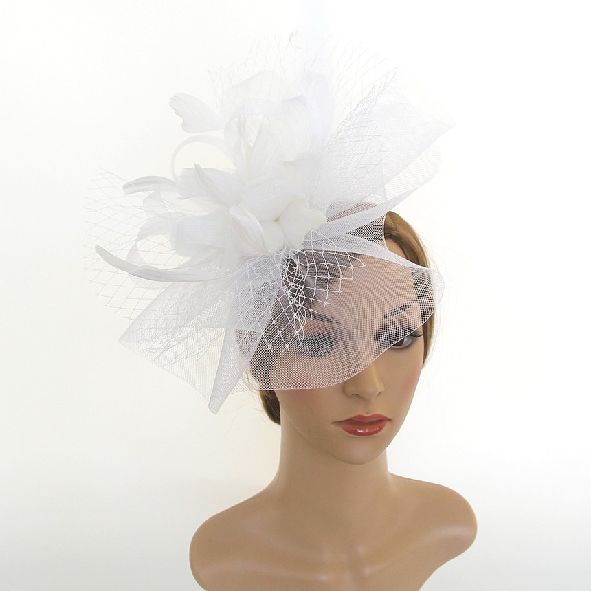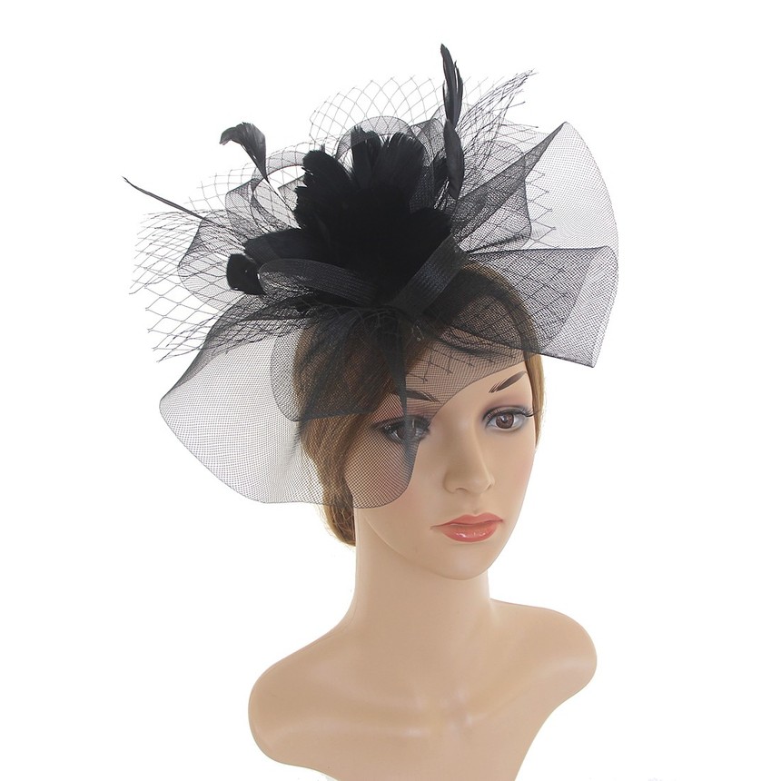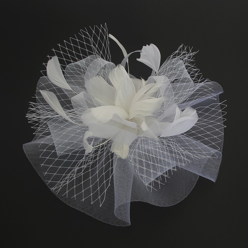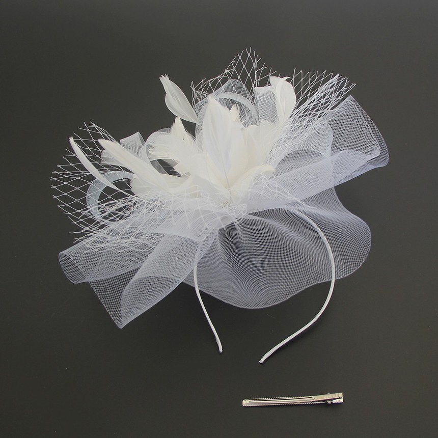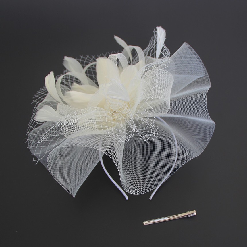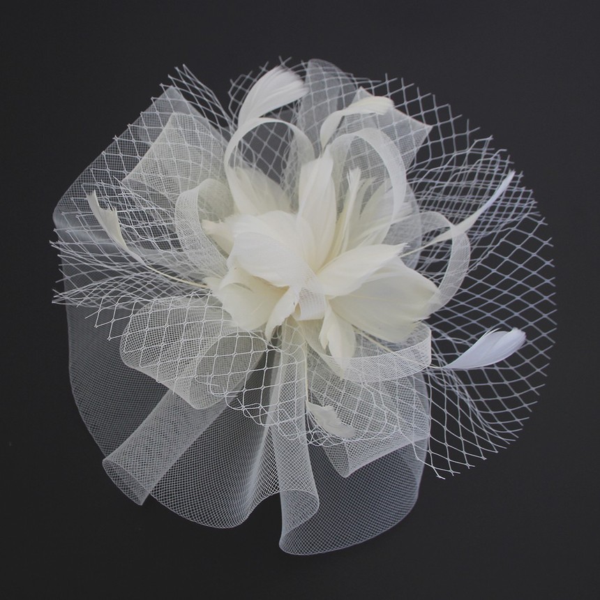Vintage veil headdress Bride's hair decoration Feather covering face Bowknot hairpin veil Little hat Children's performance accessories