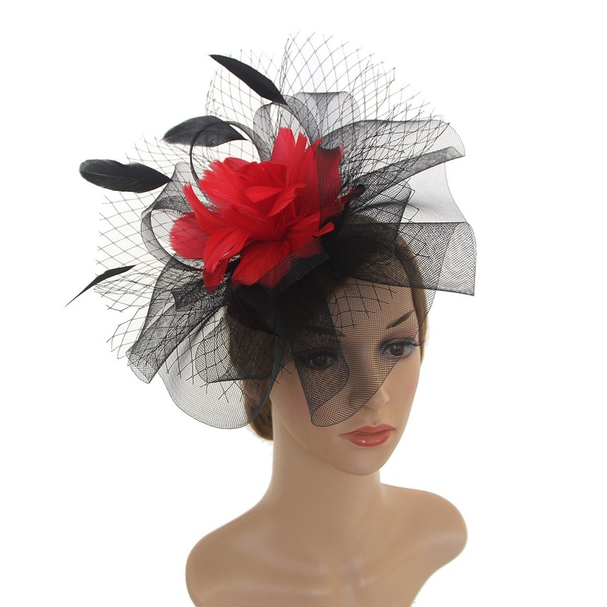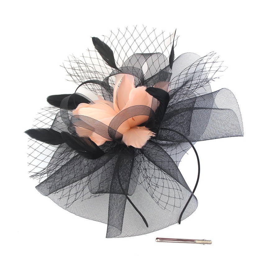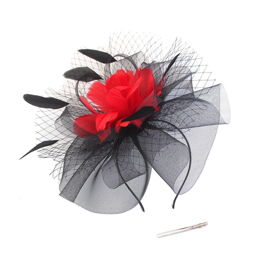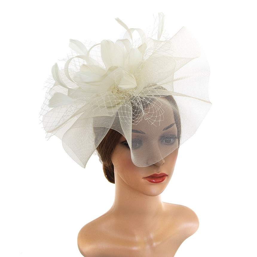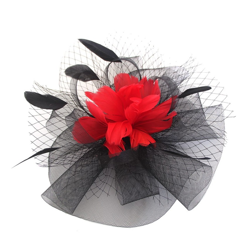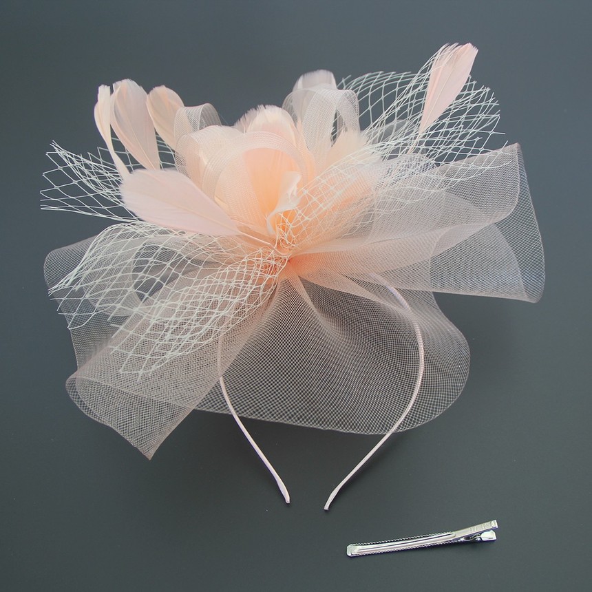 Vintage veil headdress Bride's hair decoration Feather covering face Bowknot hairpin veil Little hat Children's performance accessories