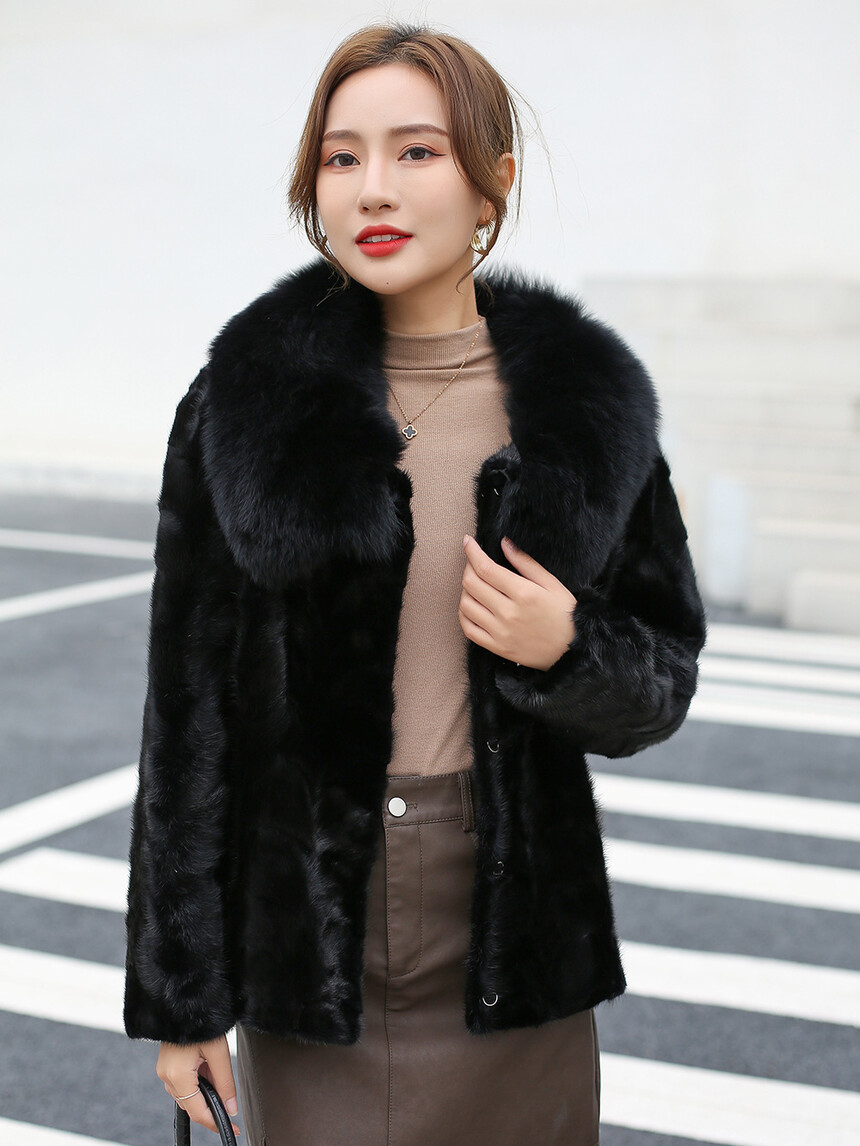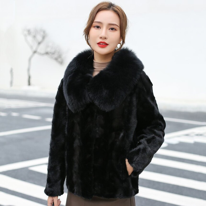 New Fox Fur Collar Hat Mink Coat Women's Combination Mink Knee Length Large Mink Fur Coat