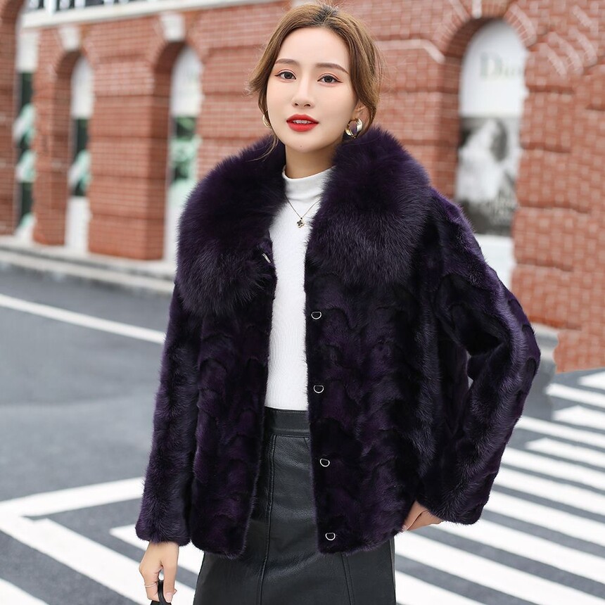 Elegant Cross Mink Purple Mink Decoration Collar Sleeve Short Flip Collar Fur Coat Women