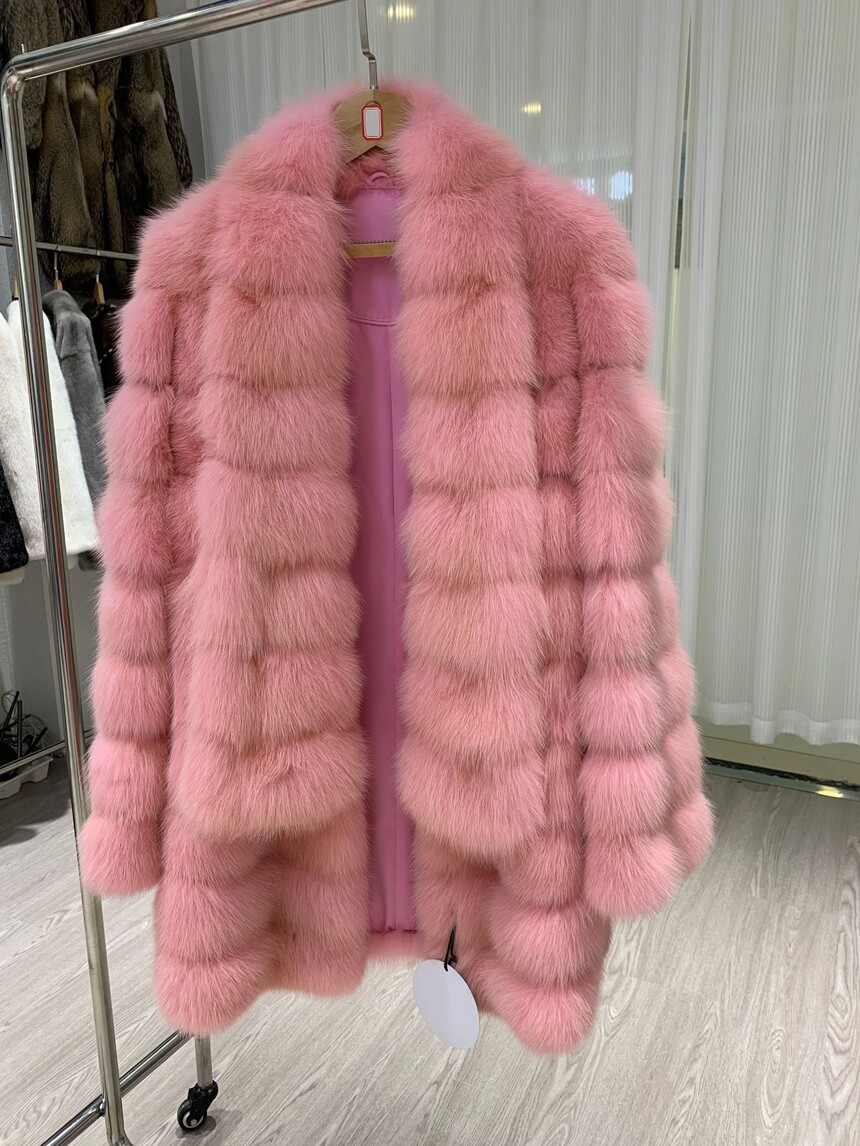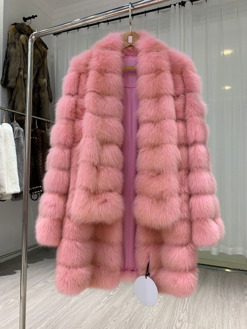 New Fox Fur Collar Hat Mink Coat Women's Combination Mink Knee Length Large Mink Fur Coat