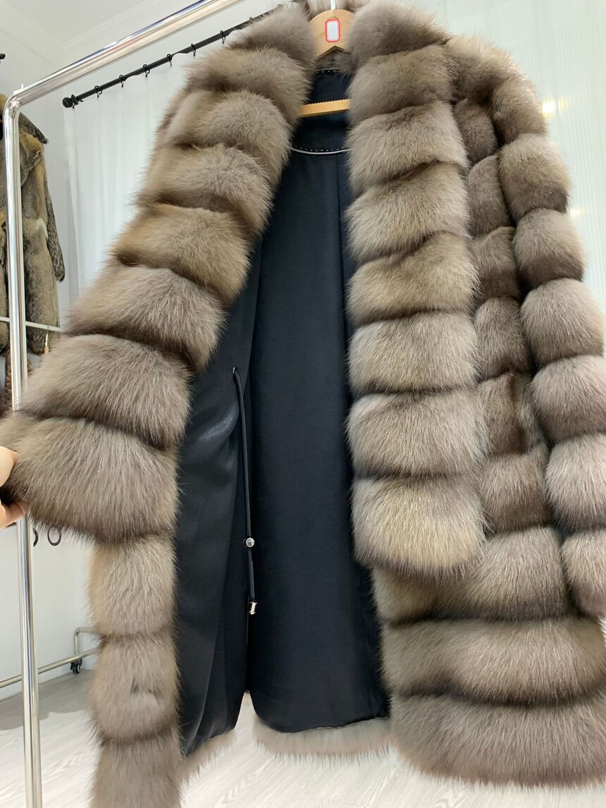 Russian Full Sky Star Sable Fur Coat Women's Mid length Mink Sable Fur Coat V-neck